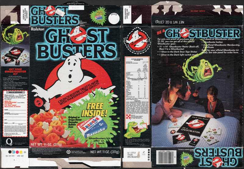 - Sometimes what the cereal company gave you is part of the cardboard box and you may need adult supervision to cut it/them out. Which was more then fine because we couldn’t imagine Ghostbusters cereal would ever be discontinued. We didn’t even know that word until the future.